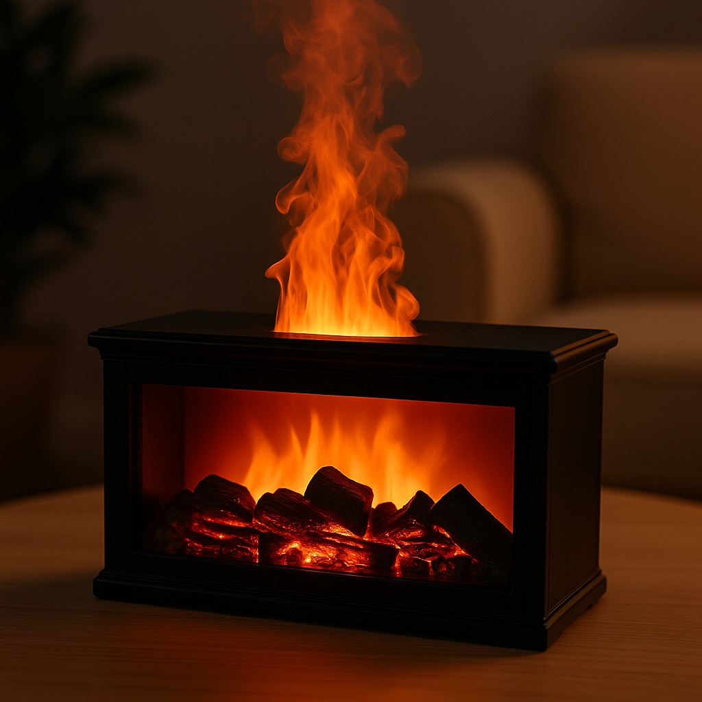 Bu alev efektli aroma difüzörlü nemlendirici, sadece havayı nemlendirmekle kalmaz, bulunduğu ortama sıcak bir atmosfer de kazandırır. Şömine benzeri alev ışığıyla yumuşak bir ambiyans yaratır; LED ışık teknolojisi sayesinde loş, rahatlatıcı bir ortam sunar. Sessiz çalışma sistemiyle gece uykularınızı bölmeden nem dengesini korur.